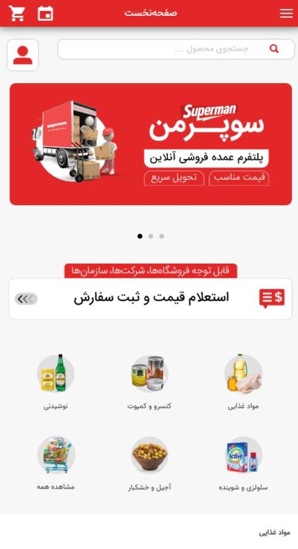 اپلیکیشن سوپرمن یک پلتفرم عمدهفروشی آنلاین است که به خریداران عمده امکان میدهد کالاهای مورد نیاز خود را با قیمتی پایینتر از بازار و با تحویل سریع سفارش دهند.